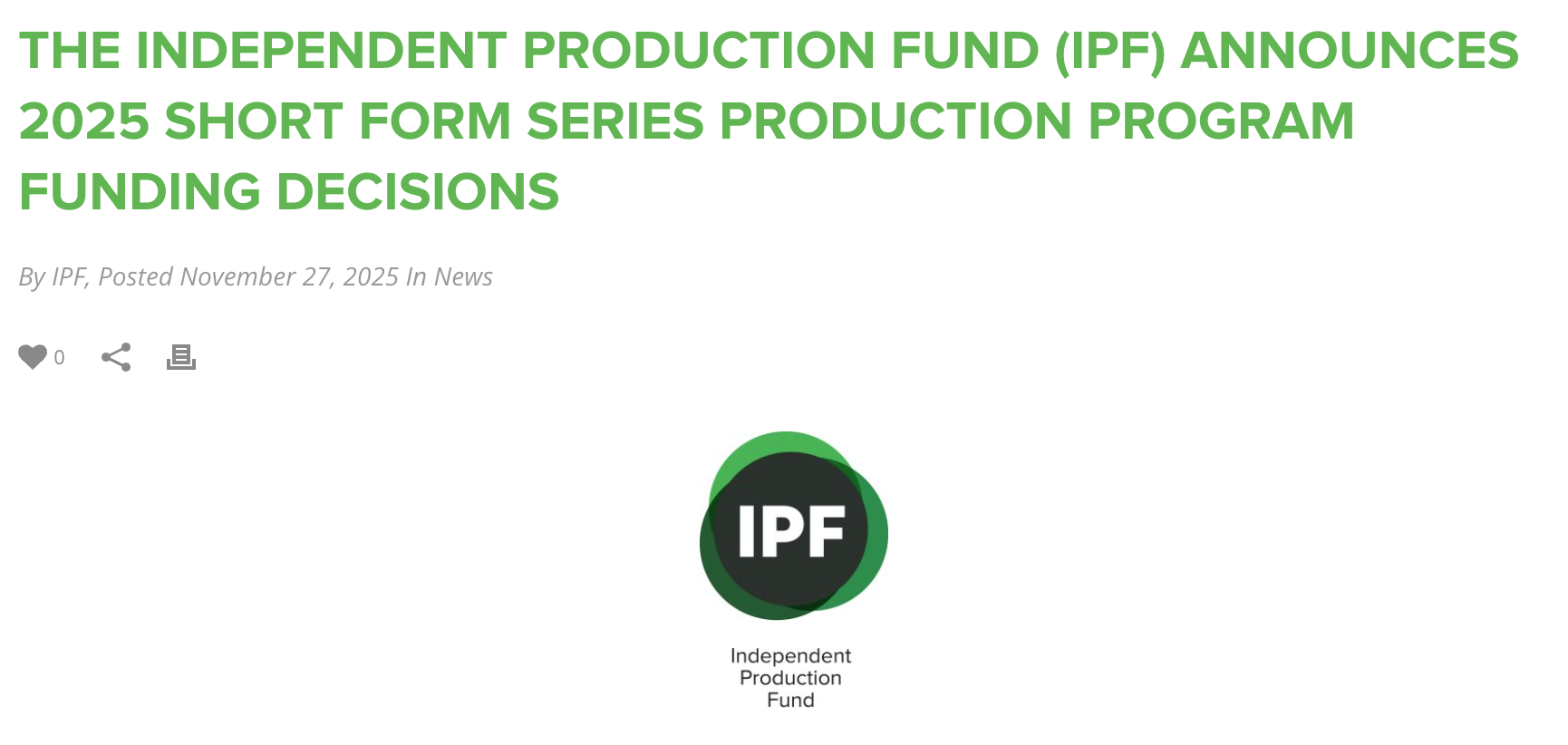 Happy to announce that Harmony Gardens has been awarded full series funding through Independent Production Fund’s Short Form Series Program. 9 series were chosen out of 225 applications.