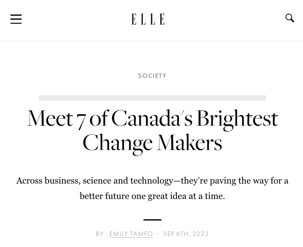Happy to share that my sister and I were named among Canada’s 7 Brightest Changemakers by ELLE Canada for our work at Cyber-Seniors.