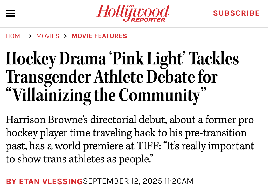 Pink Light featured in The Hollywood Reporter! This film was a labor of love, born from the courage of trans athletes who continue to fight for their place in the game and in the world. We’re beyond grateful to have had the chance to bring this story to the world.